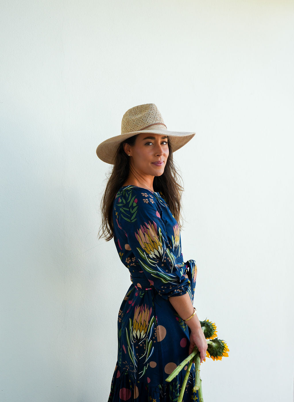 "The Charlotte" in Indigo and Lily by Leighton Ann is a stunning dress made for everyday wear. This dress is lined and has pockets. This one is perfect for lunch date, Church or even a dinner date. The "Charlotte" comes with a removable quilted belt that can be used to style the dress multiple ways. We love this new style for Leighton Ann! She is a stunner!