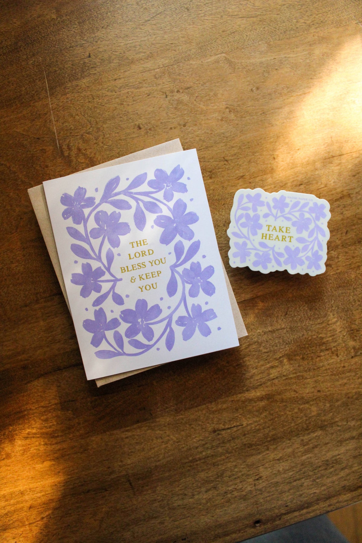 Designed to coordinate with our Bless You & Keep You Tea Towel and Take Heart Sticker for a meaningful gift to pair with your card!