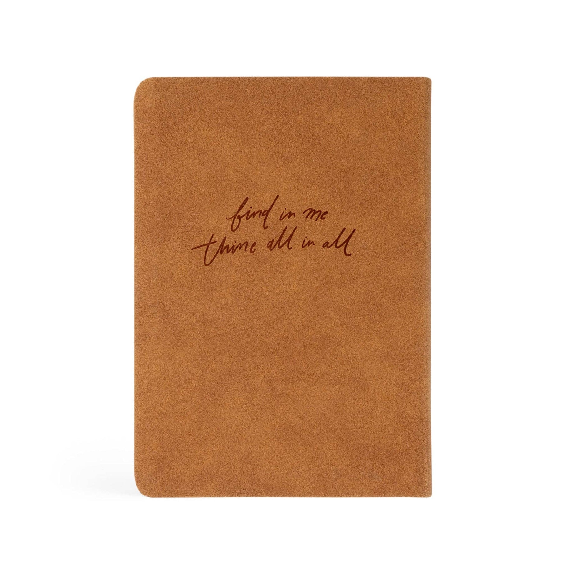We are so excited to introduce you to our matching Amelia notebook! With a suede-like texture and flexible cover, this is the best companion for our Amelia Bible. Featuring a debossed, minimalist bouquet of wildflowers, we hope this notebook enables fresh perspective as you spend time with the Lord. Our prayer for you, as you glance at the lyrics “Find in me thine all in all," is that you would find all you need in our faithful God. Product Details - 150 pages (lined) - Paper weight: 100gsm - Dimensions: 5.75" x 8.25" - Flexible, leather-like cover - Satin ribbon