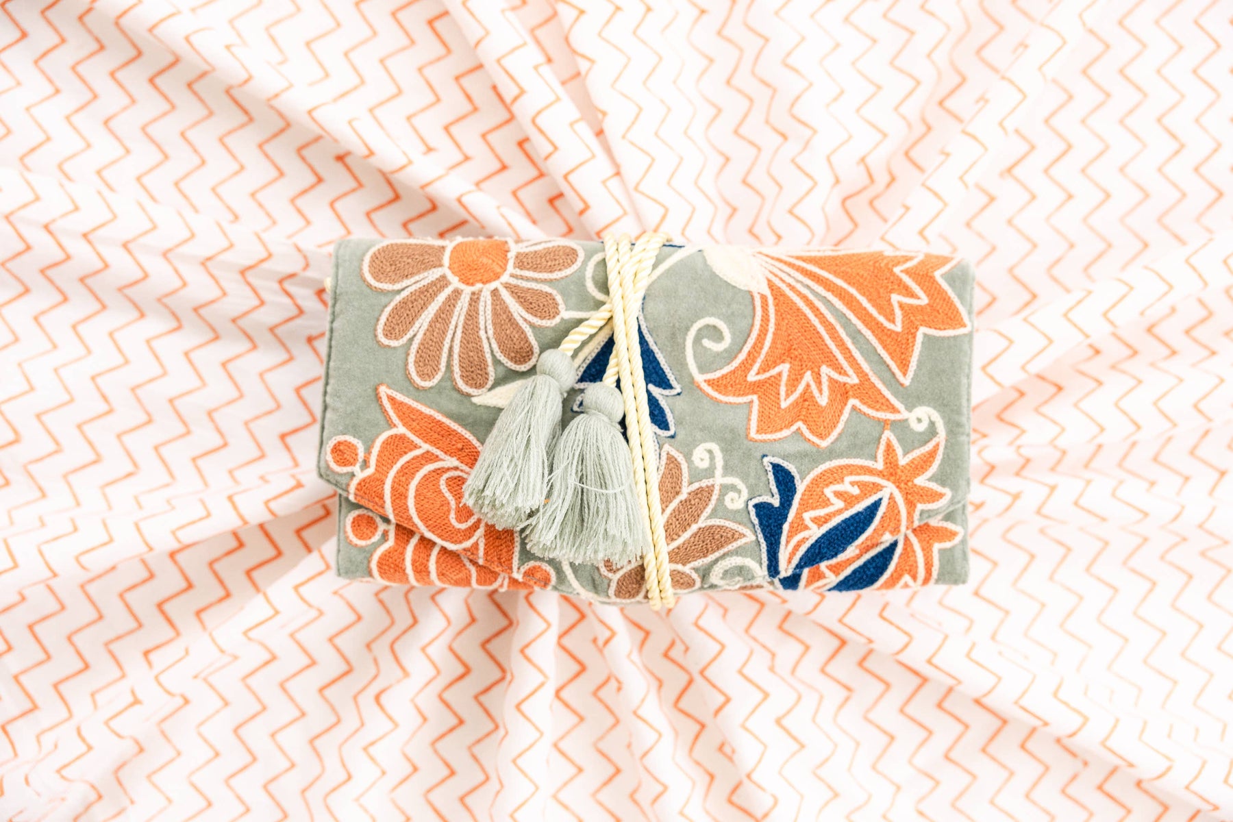 Rahab's Rope - Embroidered Velvet Jewelry Organizer Mint